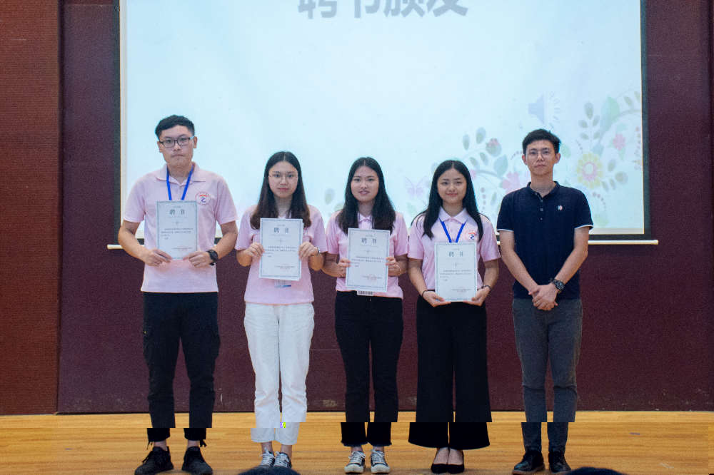 總結完畢後,由張振華宣讀2018-2019學年度學生會工作中表現突出、工作積極的優秀部門及優秀個人。經學生會日常考核決定授予宣傳部、自律委員會、網絡部、生活部優秀部門稱号,對陳傲宇等21名幹部進行表彰,由廖秀娟為他們頒獎。最後步入本次會議的最後一個環節,頒發聘書。聘書,是學生幹部在學生會一年來中辛勤工作的證明,也是對其能力的肯定,由張振華老師為每位部長及幹部頒發聘書、合影留念。